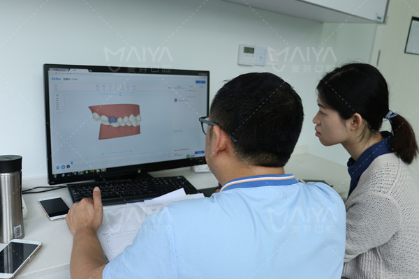 国庆期间前往麦芽口腔的顾客较多,美玲等候了一会便受到了客服专员热情的接待。美玲说她初见张超主任时,主任详细询问了她的改变需求,她是期待明年4月牙齿状况得以改善,希望门牙能达到向内倾斜的效果,帮助自己成功面试阿联酋航空。主任耐心地跟她分析说:“通过佩戴牙齿矫治器可以达到让你门牙内收的效果,但是向内倾斜对颌骨会造成损伤,效果也并不稳定。根据你的牙齿情况来看,做陶瓷托槽需要拔牙,矫正时间会比较久一些;佩戴隐适美隐形牙套可以不用拔牙,并且还能达到较好的效果,佩戴更舒适,但是价格相对会比较高,对于刚毕业的你可能有点经济负担;佩戴时代天使隐形牙套则价格低些,但是也能达到满意的效果。目前麦芽口腔开通了分期付款,对于你来说比较合适。在做矫正前建议你提前处理好口内那5颗蛀牙,对矫正效果会有更大的帮助。”