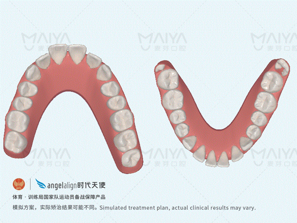 从周主任那了解到:燕莎目前口内存在前牙缝隙大、深覆合、深覆盖的情况,需要佩戴40副牙套,大约需要1年半的时间就能达到收紧牙缝、内收前牙的效果。