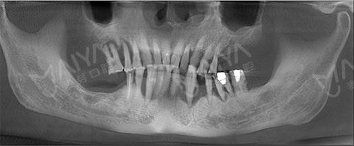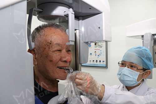 李大爷到院拍完CT和口腔全景片,了解到情况后,麦芽口腔的种植技术院长指出:由于长期对口腔疏于护理,李老的牙周情况非常差,余牙松动,且牙槽骨萎缩、吸收,现存骨量无法进行传统的种植牙术式。