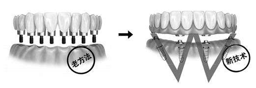 【图附文:左图为传统种植,右图为all-on-4】