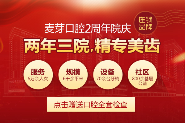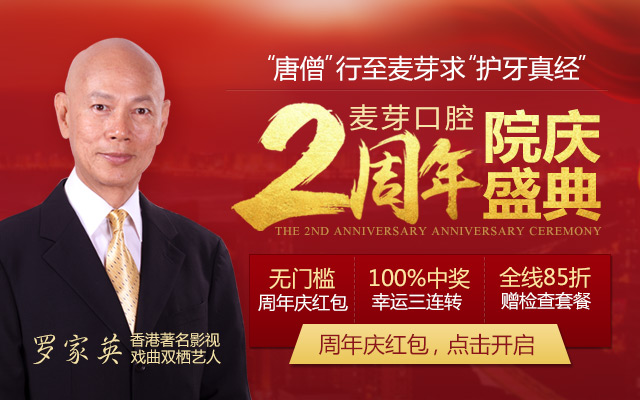 2017年11月16日-12月31日是麦芽两周年院庆月,为了感恩回馈市民一直以来对麦芽的支持,同时也为了让更多的缺牙人享受到种牙低价格好技术,麦芽口腔钜惠鹏城,种植体低至3600元,网络预约来院即享麦芽周年庆红包可抵扣看牙价格,还有更多惊喜好礼等你来拿!