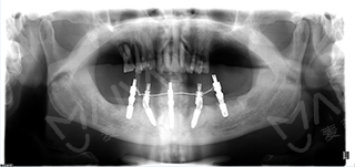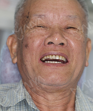 经过前期的牙周清洁、治疗后,根据李老口内实际情况,为达到更好的增加负重、增强咀嚼能力效果,麦芽口腔种植医师团队对ALL-ON-4种植技术进行升级和改造,为其量身定制了“ALL-ON-5”种植方案,治疗后总共恢复24颗牙齿。