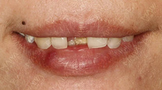 “在2006年的时候,我看我自己门牙不怎么好,上门牙就做了三个烤瓷牙。由于自身护理不当,结果在今年,门牙掉了,上牙牙齿断的,蛀的,黑的黄的,下牙因为智齿长得也不好,下半口牙被智齿挤得歪歪咧咧,一张嘴整一恐怖电影。牙齿丑吧也就忍了,可是门牙掉了,吃东西不能吃、平时见人打招呼都是个问题,那真的就不能忍了。要知道现在人出门,因为不方便张嘴见人,没有表情别人还会觉得奇怪。所以找医生解决根本问题比较重要。”