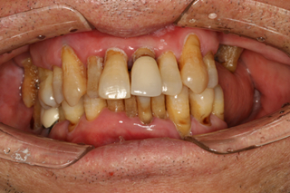 性格开朗、生活无忧的郭老却一直为牙齿问题而苦恼,原来在十几年前,郭老就已经安装假牙,但当时技术、条件并不好,假牙用过几年后就脱落了,又在检查过程中查出口腔患有晚期牙周炎,经过拔牙、治疗后,仍然没有达到满意的效果,治疗后的牙冠让他吃东西塞牙、吃东西无味,让他苦不堪言。