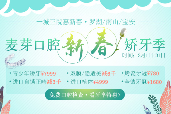 为帮助更多的人早日摆脱歪牙困扰,麦芽口腔携罗湖、南山、宝安三机构开展麦芽口腔新春矫牙活动,矫牙低至7999元,口腔检查,设计方案…不仅是矫牙,还有种牙、美牙等新春特惠活动,麦芽口腔品牌连锁静候您的到来!