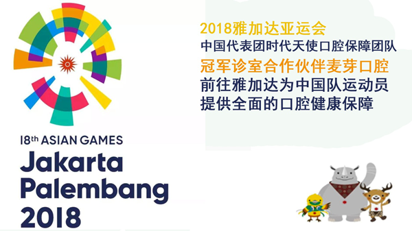 第十八届亚洲运动会将于2018年08月18日-2018年09月02日在印度尼西亚雅加达举行,雅加达是继曼谷、新德里后第三个取得第二次亚运会主办权的首都城市。雅加达曾于1962年举办第4届亚运会。雅加达亚运会设40项比赛项目,包括32个奥运项目和8个非奥项目。作为本届亚运会中国代表团时代天使口腔保障团队,冠军诊室合作伙伴麦芽口腔受邀派遣专业口腔医生前往雅加达,入驻亚运会中国代表团保障营,为中国队运动员提供全面的口腔健康保障。