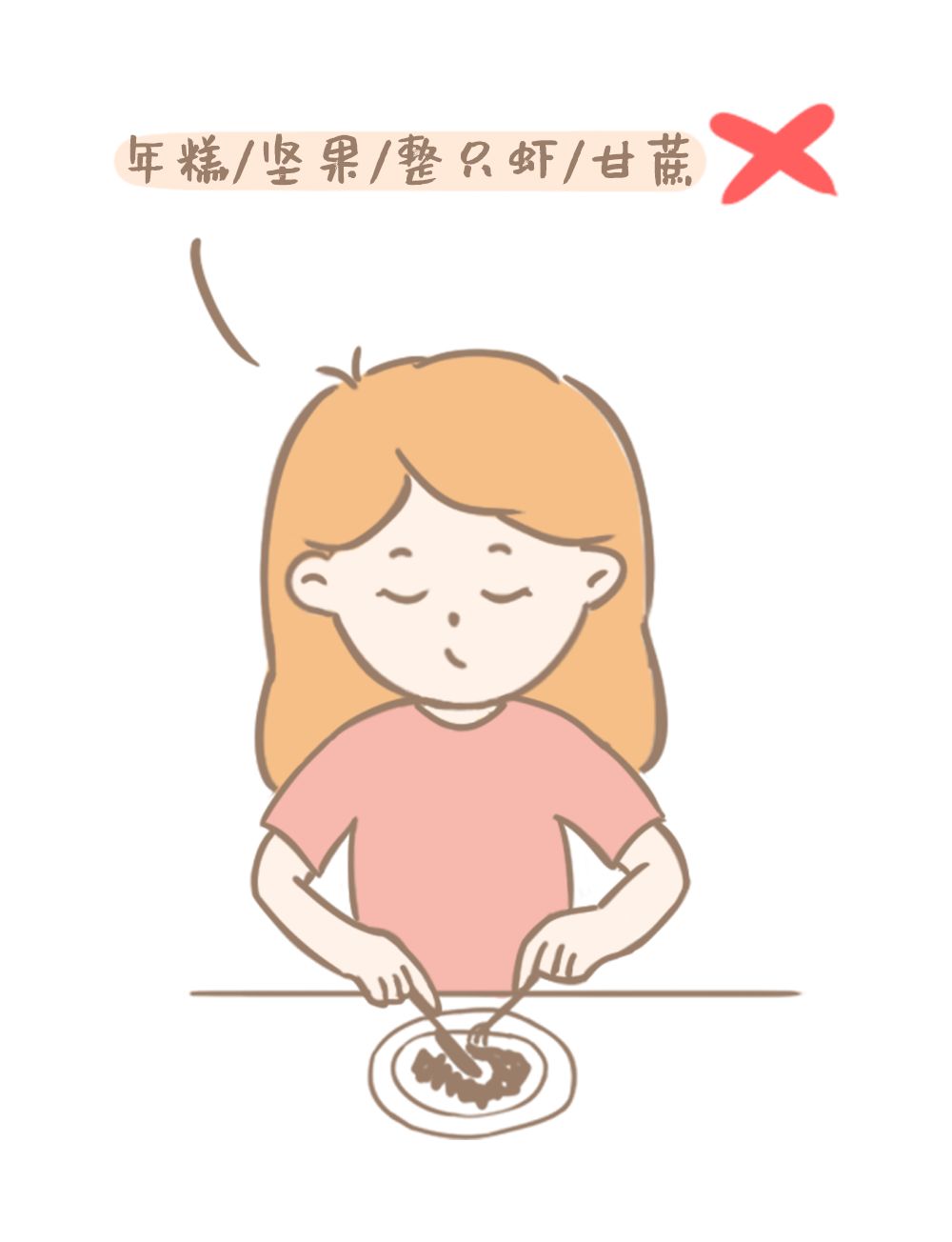 如牛奶糖、麦芽糖和一些饼干之类的食品,高糖分食物容易蛀牙,高粘性食物则容易让托槽和结扎丝出现意外。
