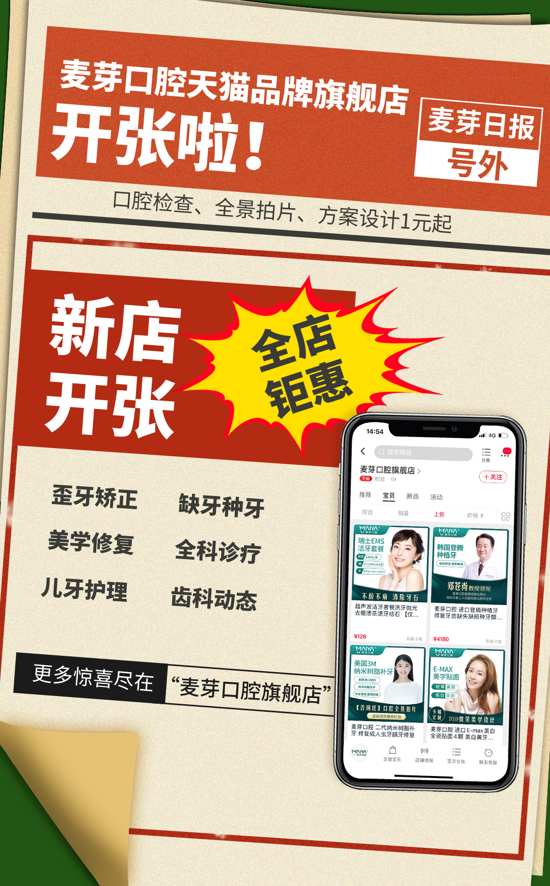 (原标题:麦芽口腔天猫旗舰店正式上线——冠军诊疗服务惠及鹏城市民)
