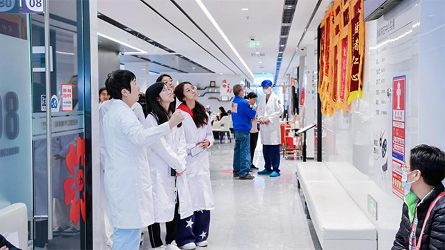 「原來現在的牙科治療已經這麼智能化了!」活動伊始,新生們分組走進門診、數字化影像中心、消毒供應中心等核心區域,近距離觀摩現代化口腔專科醫院的運作流程。